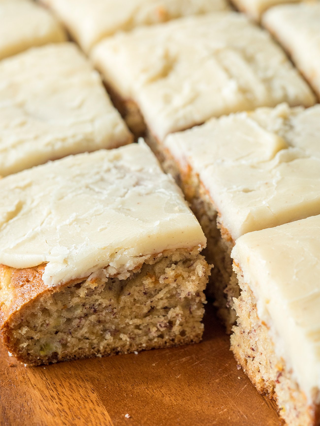 - Using a spatula, spread the brown butter frosting over the warm bars (the frosting will be easier to spread while the bars are still warm).