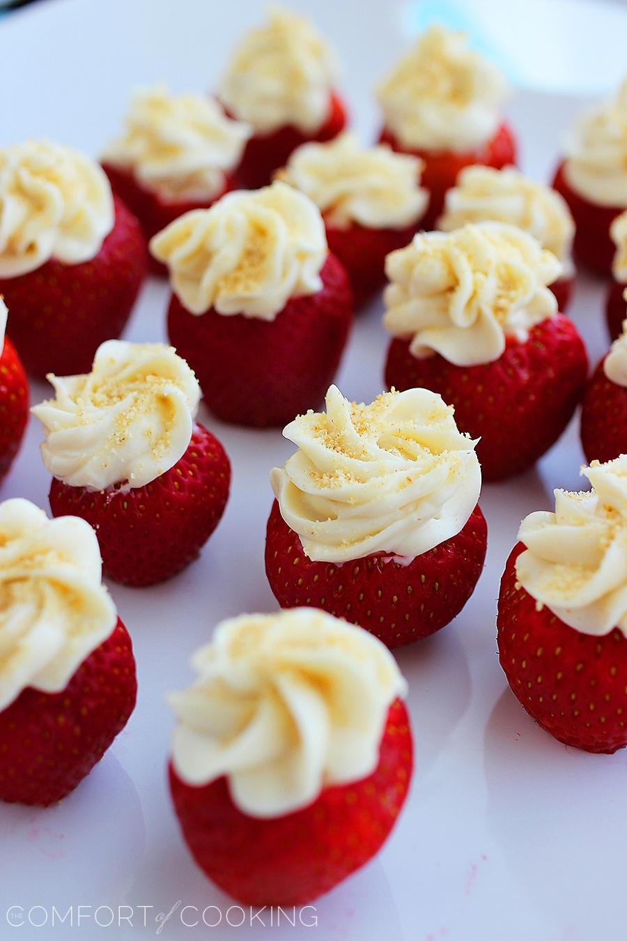 - Transfer mixture to a piping bag and pipe into strawberries.