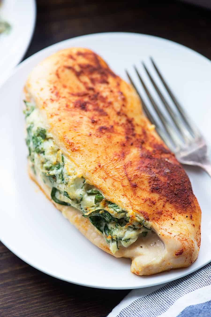 - Use a sharp knife to cut a pocket into the side of each chicken breast. Set chicken aside.